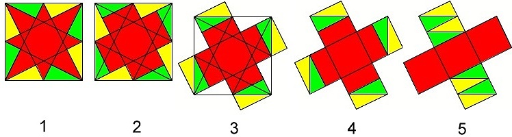 Zum Schluss verschiebt man die roten Rechtecksflächen, sodass drei gleich große Quadrate entstehen.
